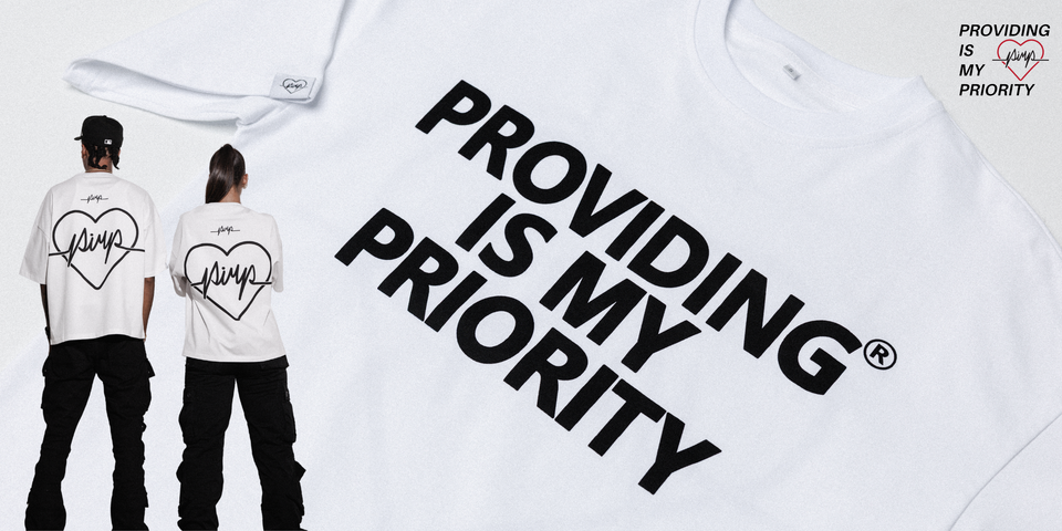 Features a bold "Providing Is My Priority" print with premium cotton comfort, easy to style, durable fabric, and all-day wearability.